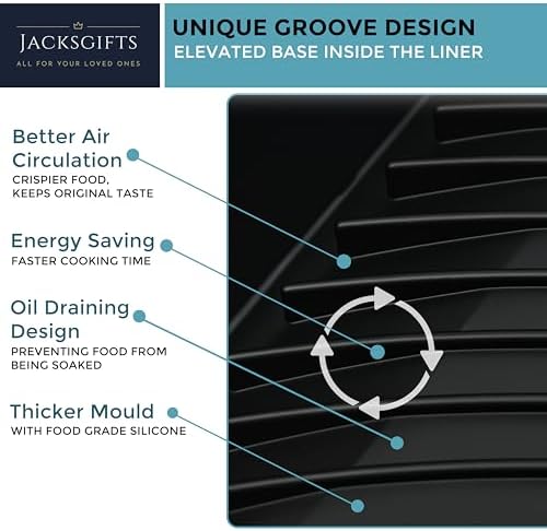 | Feature | ๐๐ป๐ป๐ผ๐๐ฎ๐๐ถ๐๐ฒ ๐๐ฟ๐ผ๐ผ๐๐ฒ ๐จ๐ป๐ถ๐พ๐๐ฒ ๐๐ฒ๐๐ถ๐ด๐ป ๐๐ผ๐ฟ ๐ข๐ฝ๐๐ถ๐บ๐ฎ๐น ๐๐ผ๐ผ๐ธ๐ถ๐ป๐ด ๐ฅ๐ฒ๐๐๐น๐๐: Our AF400UK silicone liners for air fryers feature a unique groove design and an elevated base, promoting enhanced air circulation and efficient oil filtration. This ergonomic design not only preserves the natural taste of your food but also yields a crispier texture. Outperforming alternatives, it effectively drains excess oil, ensuring your meals are not only delicious but healthier. Ensuring to reduced energy consumption and savings on utility bills with our Ninja Air Fryer Accessories af400uk. |