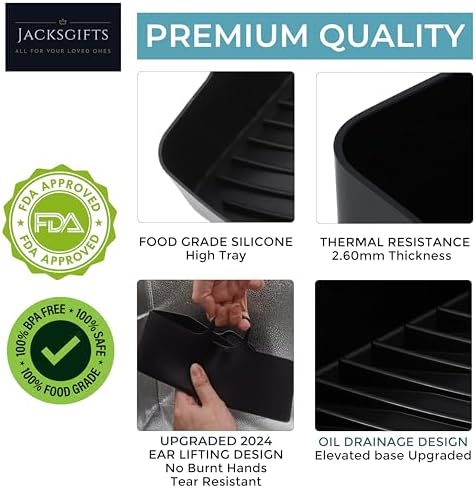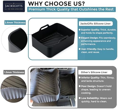 | Feature | ๐๐ผ๐ป๐๐ฒ๐ป๐ถ๐ฒ๐ป๐ฐ๐ฒ ๐ ๐ฒ๐ฒ๐๐ ๐๐๐ฟ๐ฎ๐ฏ๐ถ๐น๐ถ๐๐: Airfryer accessories are designed with your convenience in mind. Our Silicone Air Fryer Liner ninja features an easy-clean surface and newly upgraded handles as of March 2025, making post-meal cleanup a breeze and enhancing the durability and tear resistance of the handles. Embrace a cleaner, more efficient cooking environment with our Ninja BBQ accessories and Ninja Airfryer liners silicone that simplifies maintenance without compromising on quality. |