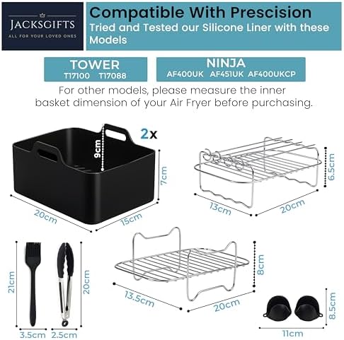 | Feature | ๐ก๐ถ๐ป๐ท๐ฎ ๐๐ฐ๐ฐ๐ฒ๐๐๐ผ๐ฟ๐ถ๐ฒ๐ ๐ฃ๐ฟ๐ฒ๐ฐ๐ถ๐๐ถ๐ผ๐ป ๐๐ป๐ด๐ถ๐ป๐ฒ๐ฒ๐ฟ๐ฒ๐ฑ ๐๐ผ๐ฟ ๐ฆ๐ฒ๐น๐ฒ๐ฐ๐๐ฒ๐ฑ ๐ก๐ถ๐ป๐ท๐ฎ ๐ ๐ผ๐ฑ๐ฒ๐น๐: Elevate your cooking experience with our advanced silicone air fryer accessories, meticulously designed for the Ninja Dual Zone Air Fryer Ninja Foodi MAX Dual Zone Air Fryer AF400UKCP, AF400UK, AF451UK, TOWER T17088, and T17100, ninja double stack air fryer accessories.. Ensure a perfect fit by confirming dimensions: Full Height 9 cm, Length 20 cm, Width 15 cm. For other models, kindly measure the inner basket prior to purchase to guarantee compatibility. |