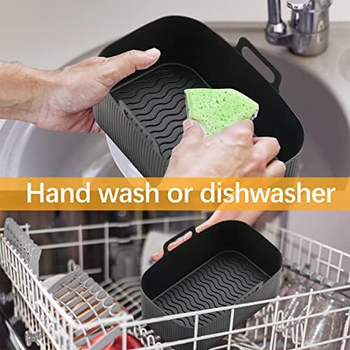 【Premium Quality Materials】- A pack of 2 air fryer liners both measure 7.6 x 4.9 x 2.7 inches for ninja air fryer accessories. The air fryer accessories are made of 100% food-grade silicone that is BPA-free, so you can rest assured that your food is freshly baked and delicious. Our air fryer silicone liners can withstand temperatures up to 450°F.