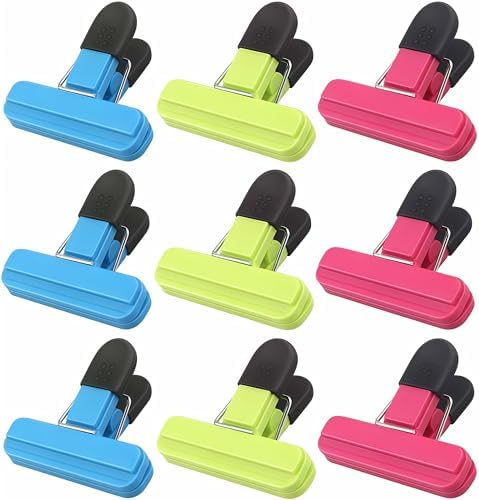 9Pcs Food Clips for Bag Sealing, Reusable Kitchen Food Clips for Bags, Freezer Bag Clips, Airtight Storage, 3 Colours for Home, Kitchen