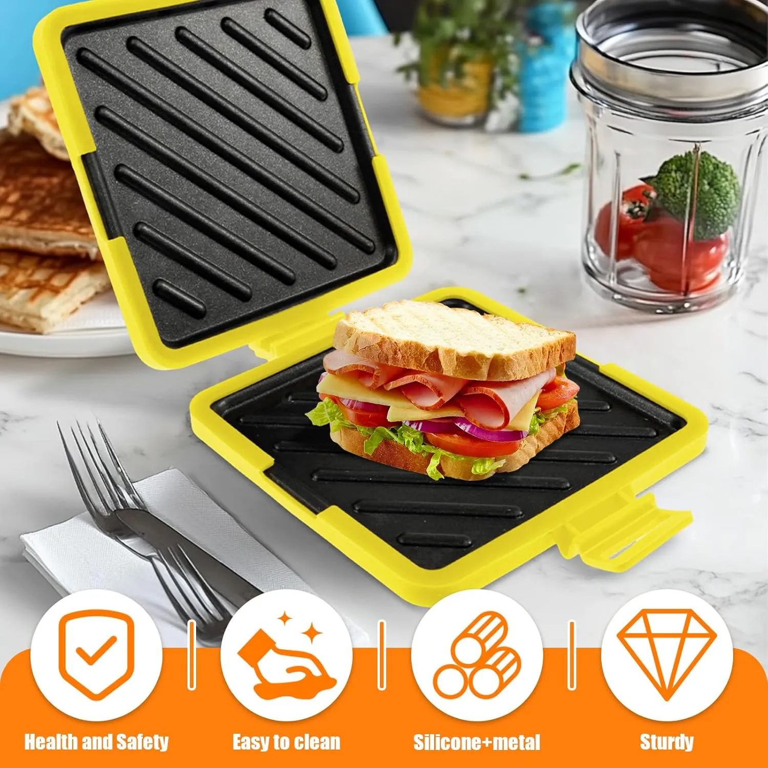 - Convenient Use: Place directly in the microwave for quick, crispy sandwiches. Includes a heat-resistant mitt for safe handling.
